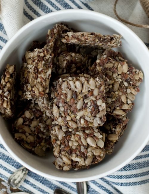 Getrocknete Leinsamen Cracker mit Sonnenblumenkernen und Kreuzkümmel